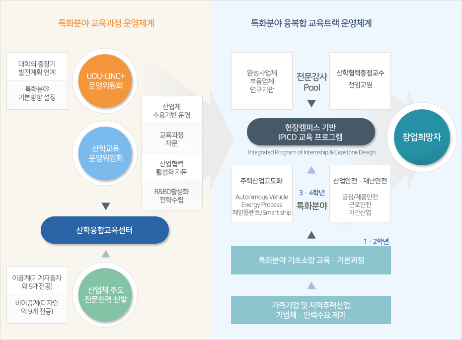 지역사회 산업체의 요구사항 및 수요를 적극 반영한 특화분야 교과과정을 수립·개설하여 전문분야의 체계화된 교육을 제공